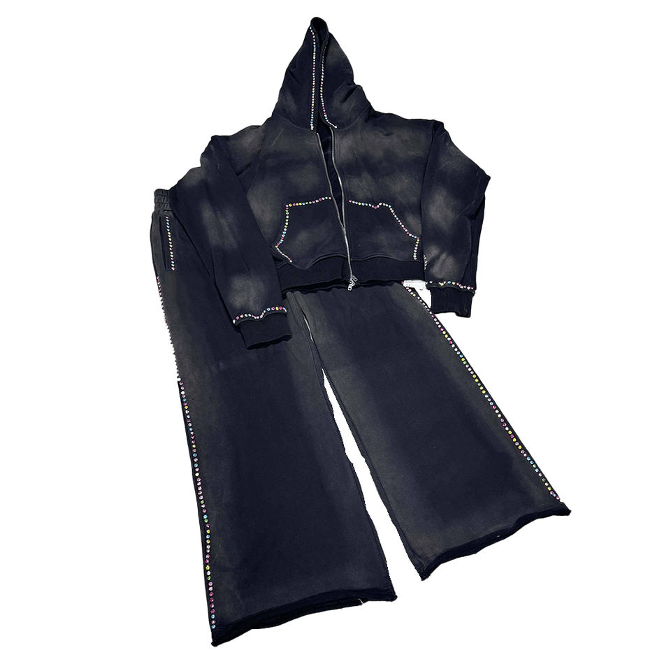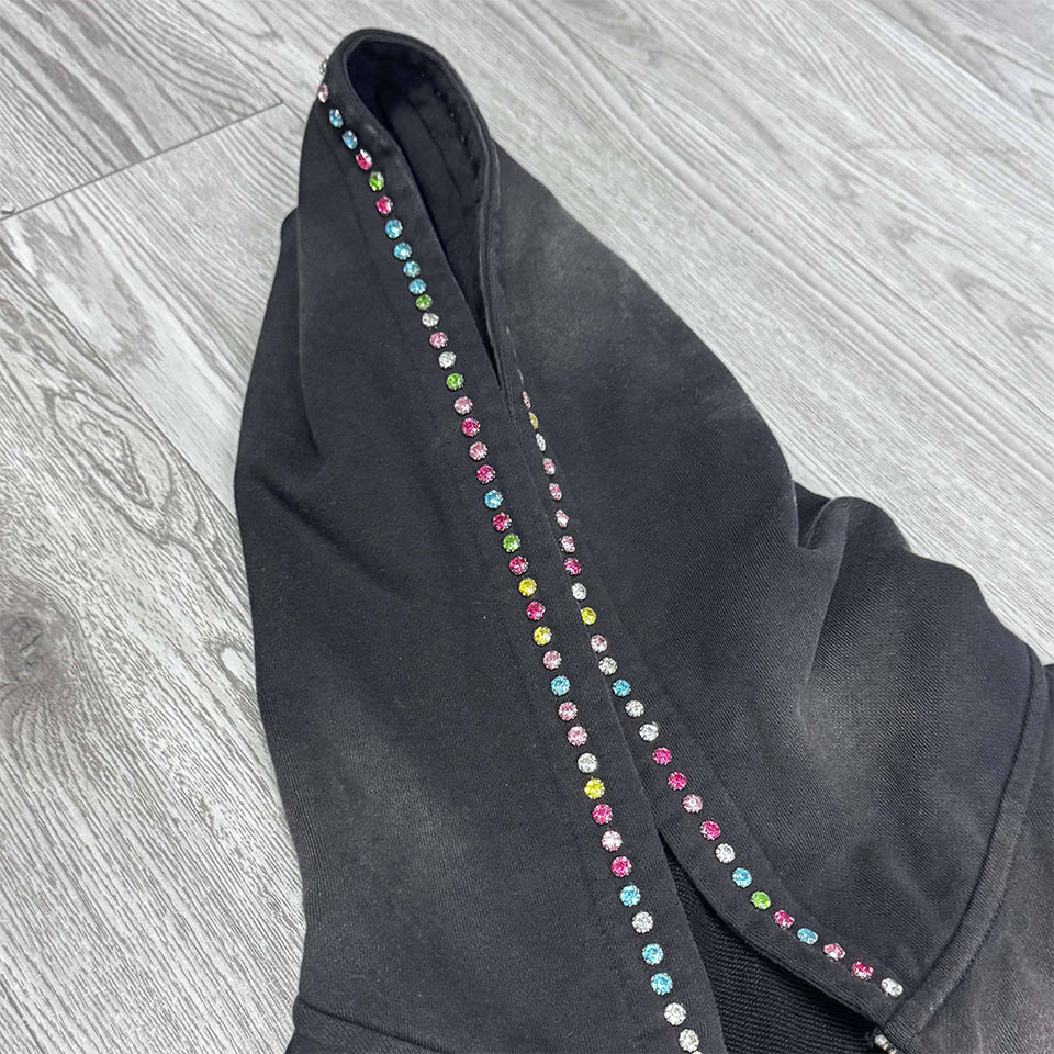 Conjunto Deportivo de Diseño con Pedrería, Sudadera con Capucha Brillante y Pantalones Jogger, Personalización de Marca Disponible