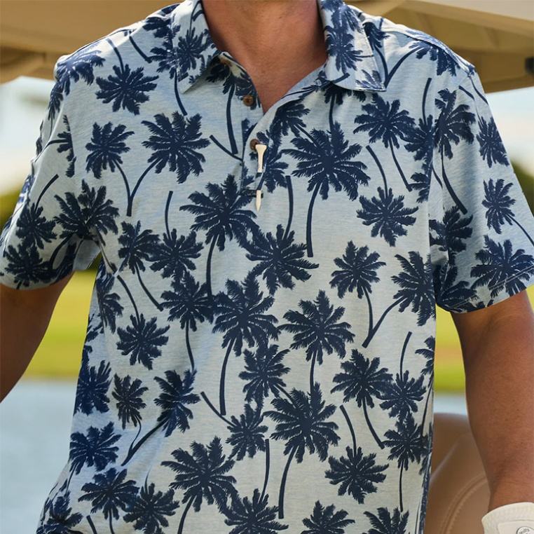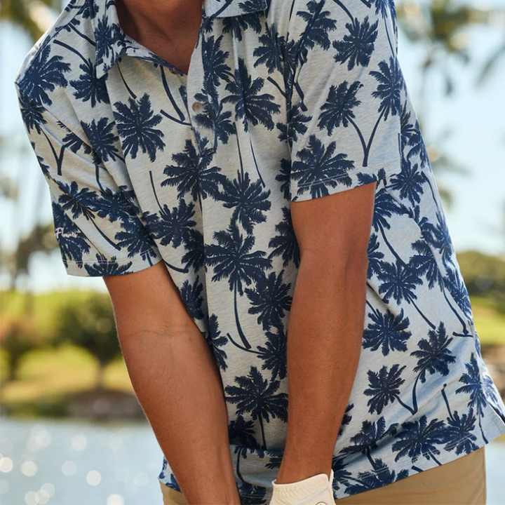 Polo de Manga Corta con Dos Botones y Diseño Acordonado, Camisa de Golf Estampada de Alta Calidad, Polo Personalizado 100% Algodón