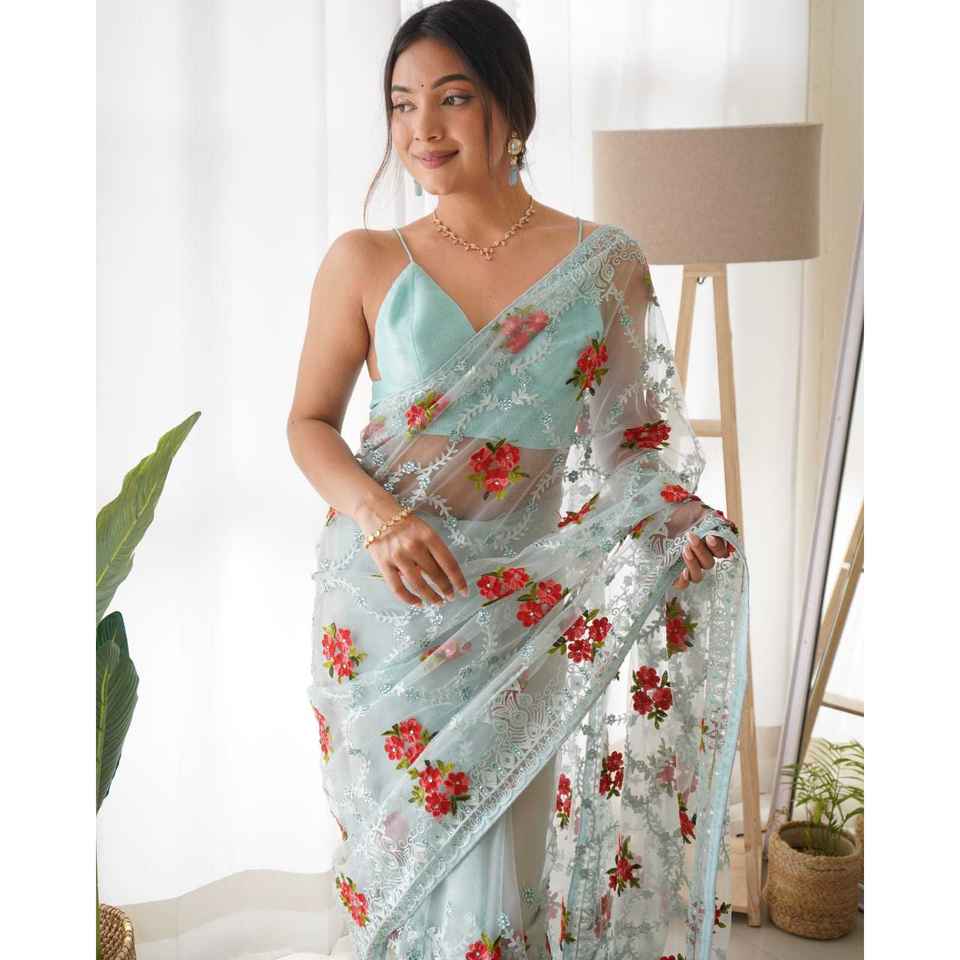 Sari de diseñador con hilo y Zari bordado trabajo vestidos elegantes para mujer