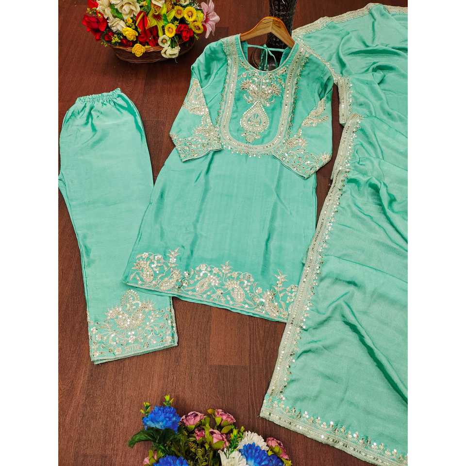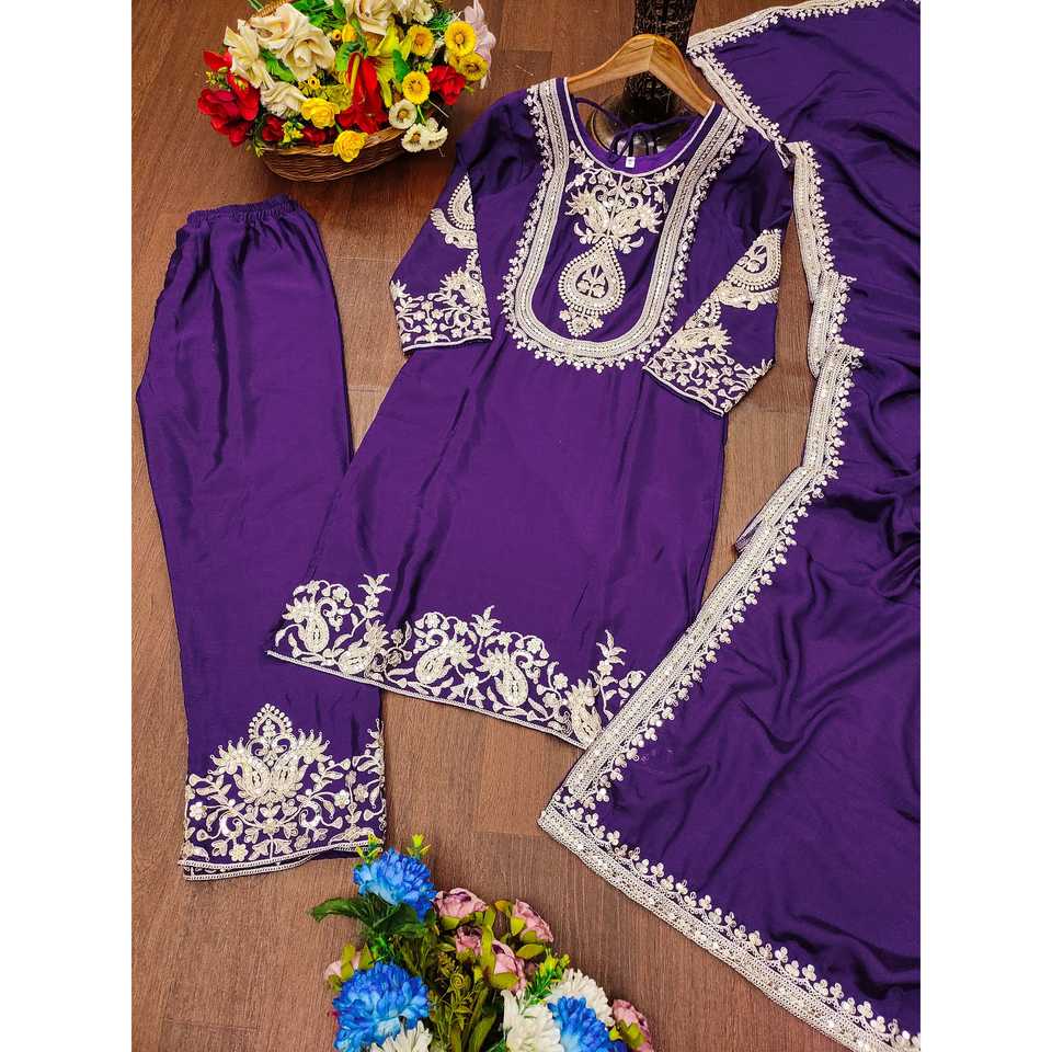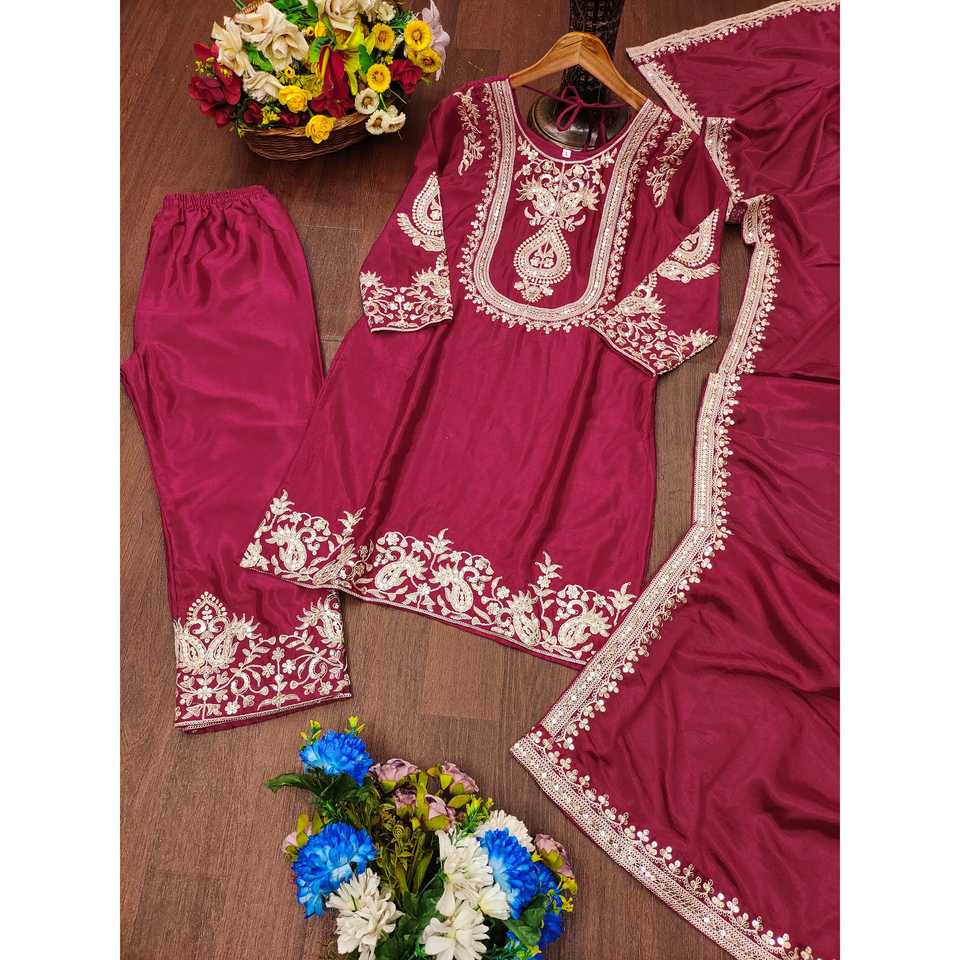Conjunto de Traje de Satén de Diseño con Bordado y Secuencia de Codificación