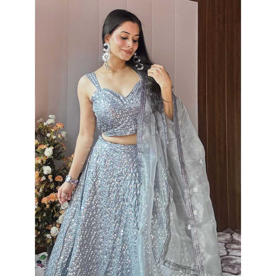 Designer Sequence Work Party Wear Lehenga Choli para Club Ocasiones