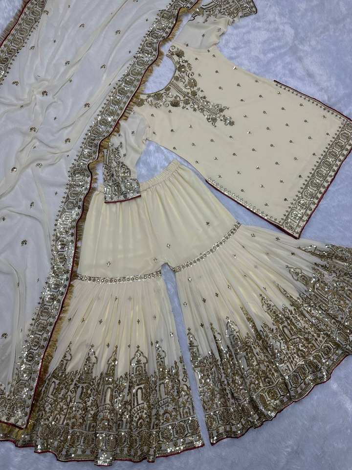 Conjunto Sharara Estilo Bollywood de Antra Lifestyle Designer, con Bordado Intenso y Lentejuelas de 5mm, Top, Dupatta de Georgette Sintética de Secado Rápido