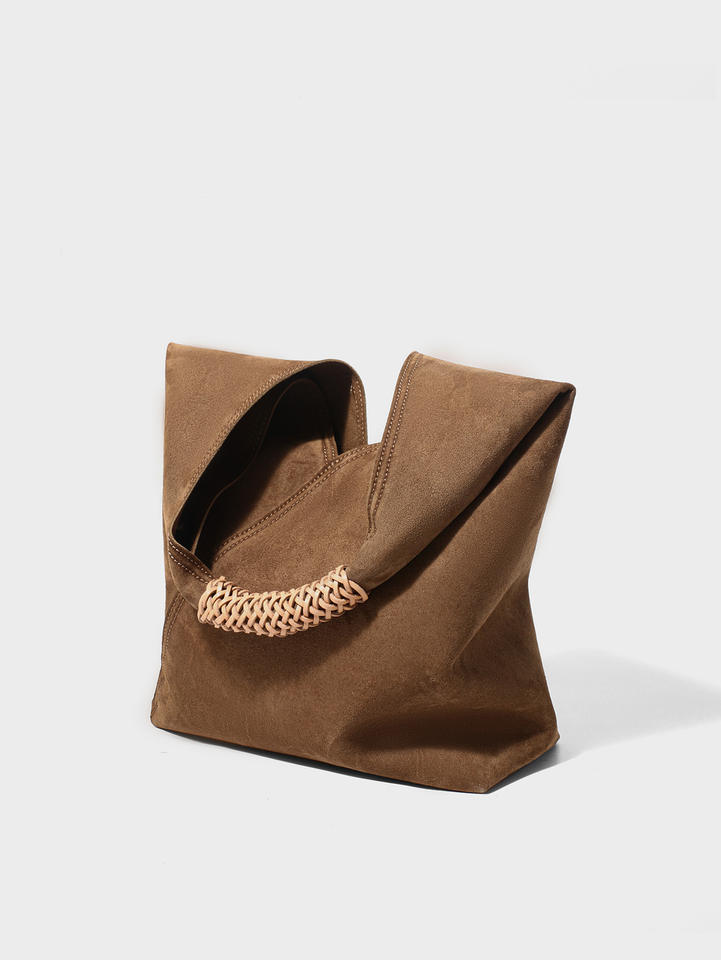 Conjunto de Bolsos de Hombro de Diseñador, Bolso Tipo Cubo de Ante, Cuero Vacuno Genuino, Bolso de Hombro Holgado, Bolso Tipo Cubo de Moda para Mamá