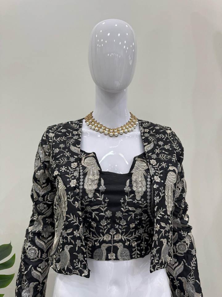 Lehenga Choli y Koti de seda de diseño con bordado de lentejuelas estilo Bollywood puntada completa hasta 42 Ropa Étnica nupcial para mujer