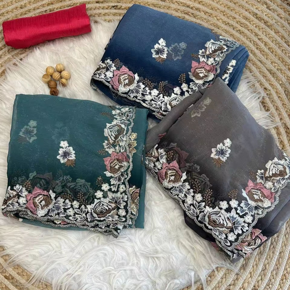 Sari de seda de diseñador con hermoso Borde de trabajo de corte bordado estilo pakistaní para ropa de fiesta de boda ropa india y pakistaní