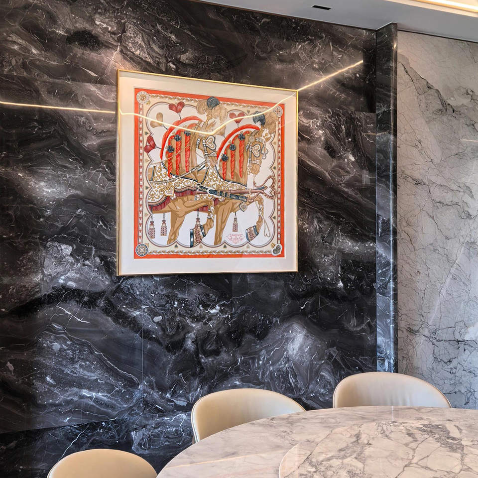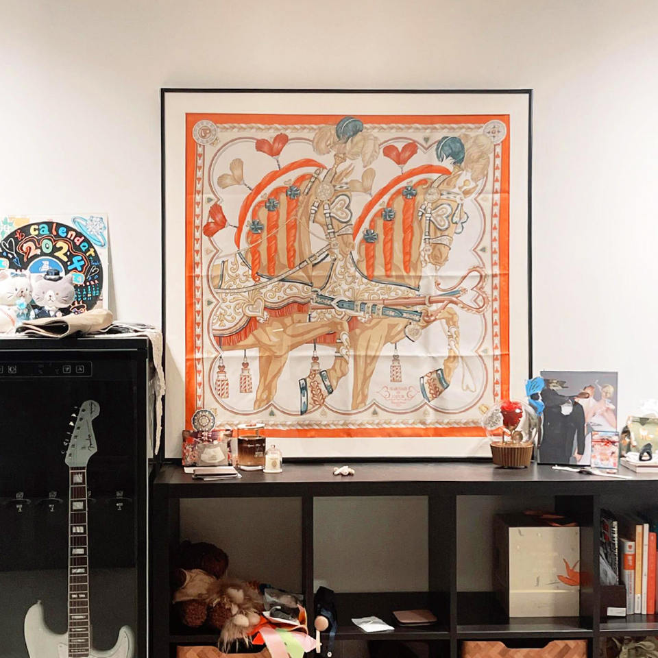 Bufanda de seda de diseño para decoración de pared, caja acrílica, ilustraciones inspiradas en lujo para galería o hogar