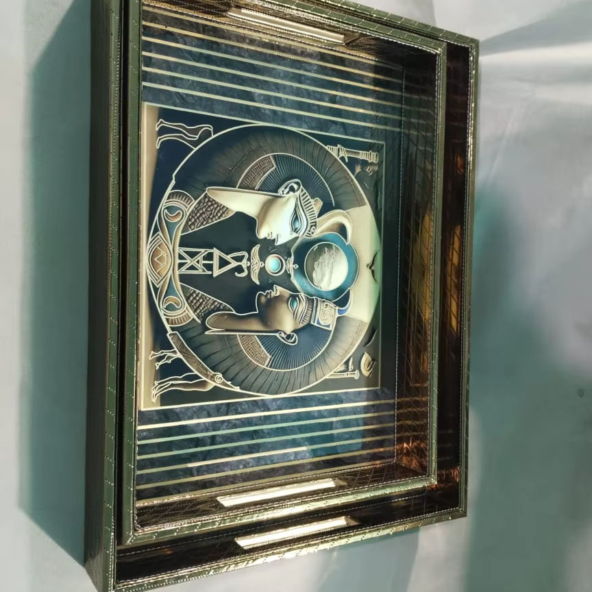Bandeja de servicio de cuero de madera de un solo nivel de diseñador para cocina, comedor, sala de estar, decoración del hogar, restaurantes, hoteles, para vajilla de comida