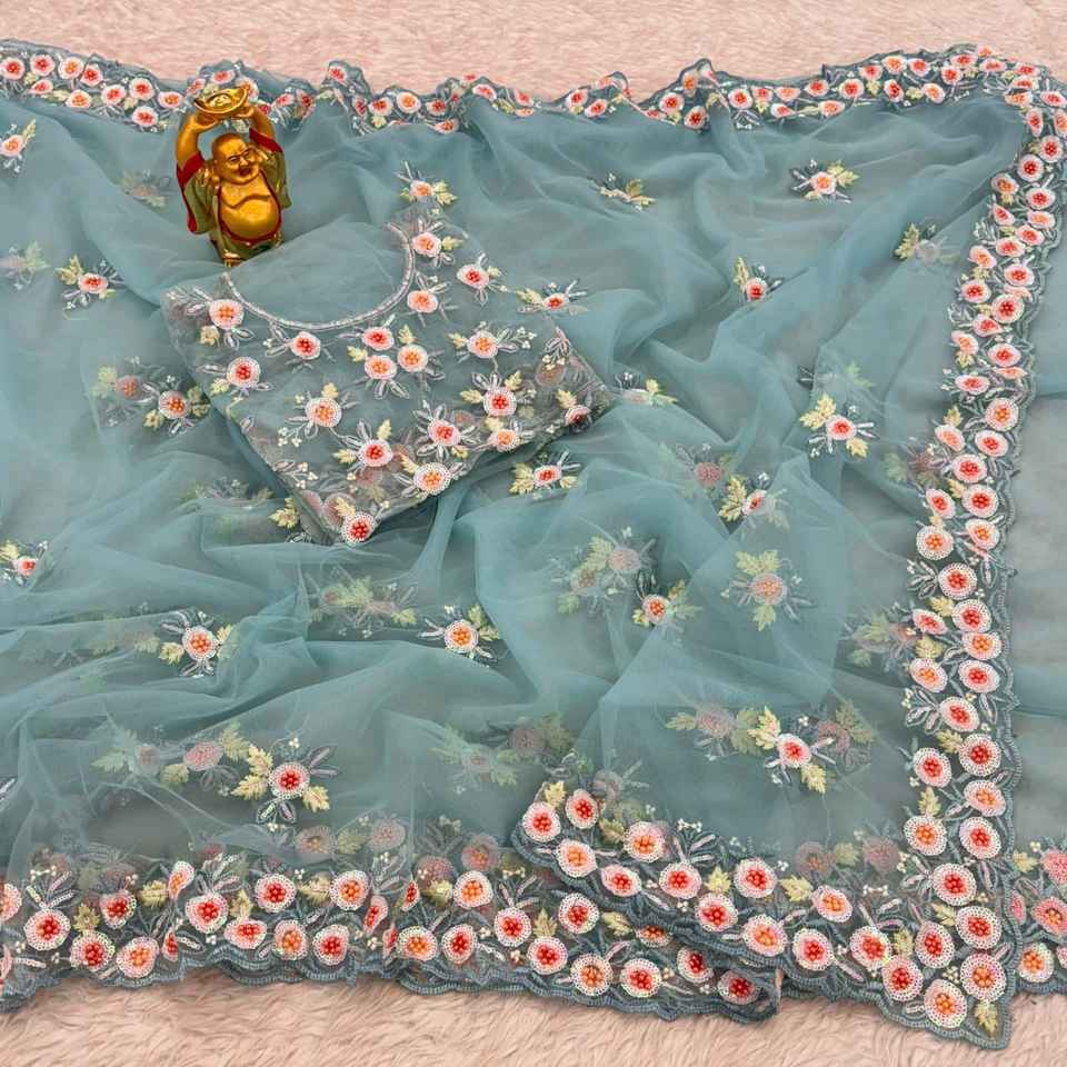 Sari de Seda Suave con Bordado y Adornos de Perlas, Diseño Moderno, Estilo Tradicional Indio para Bodas y Fiestas