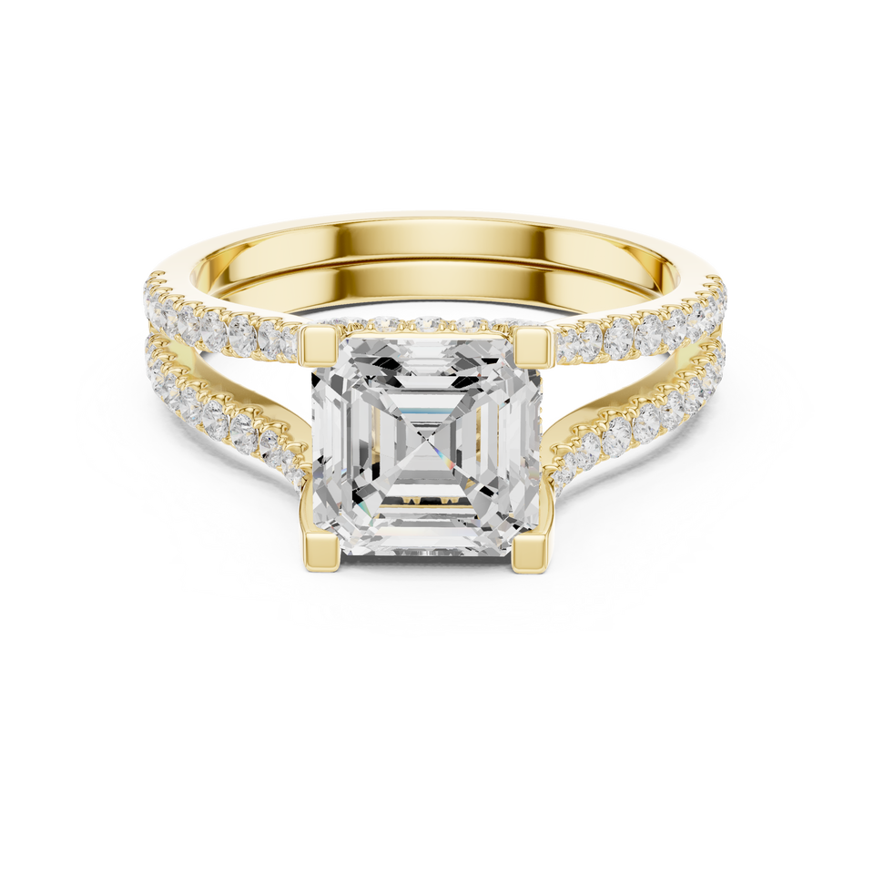 Anillo de Compromiso y Boda para Mujer, Diseño de Dos Piezas, Oro Sólido de 14k, Certificado IGI, Diamante Cultivado en Laboratorio de 1.50 CT, Corte Asscher, E VS1