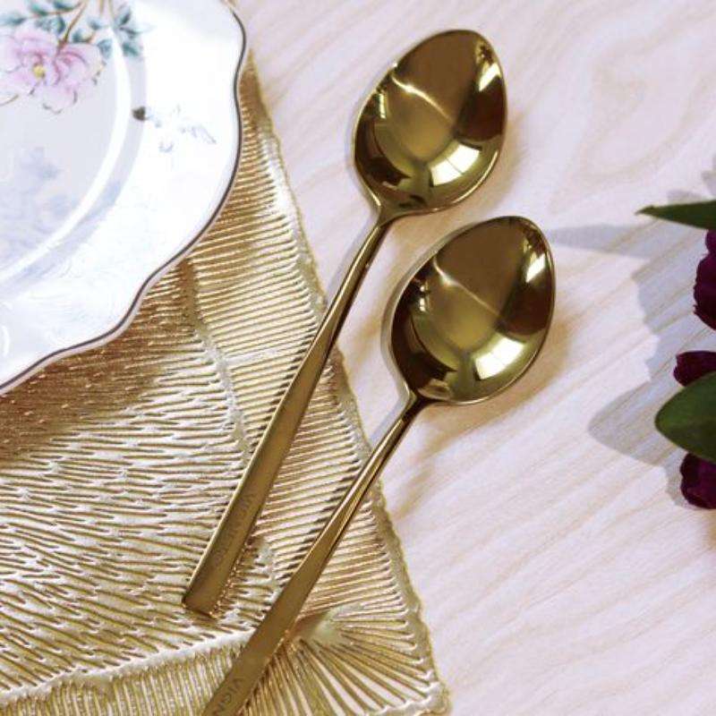 Juego de Cucharas de Acero Inoxidable de Diseño, Elaboradas para Fiestas y Eventos Gastronómicos de Alta Gama, Detalles Artísticos, Acabado Dorado, Pulido Espejo Superior
