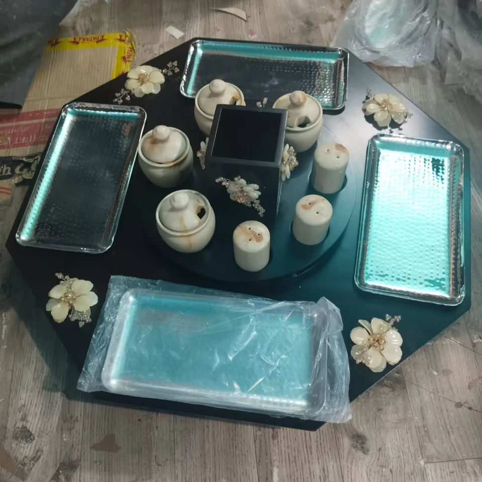 Platos de Aperitivos de Madera de Lujo con Diseño Elegante y Recipientes para Salsas, Ideales para Fiestas y Reuniones