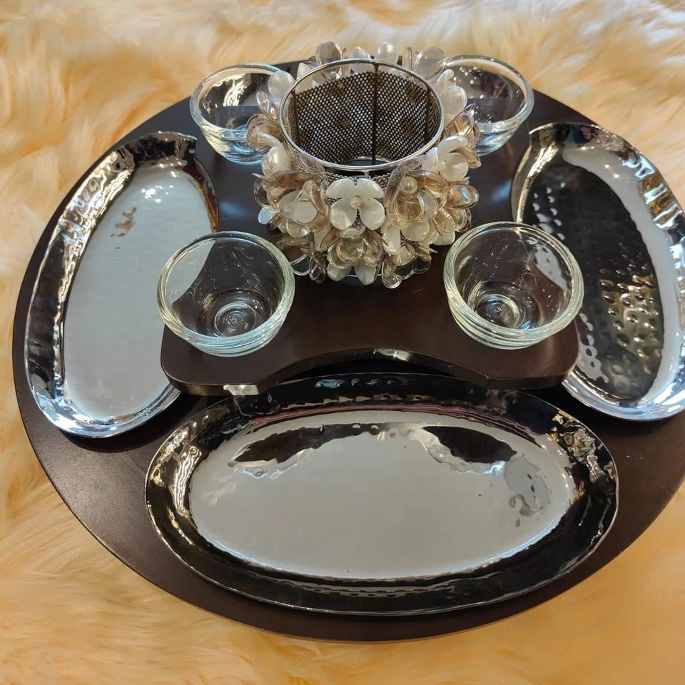 Elegante Juego de Platos para Aperitivos de Diseño en Madera de Lujo con Portapañuelos y Tazones para Salsas para una Presentación Elegante en Fiestas por K S Exports