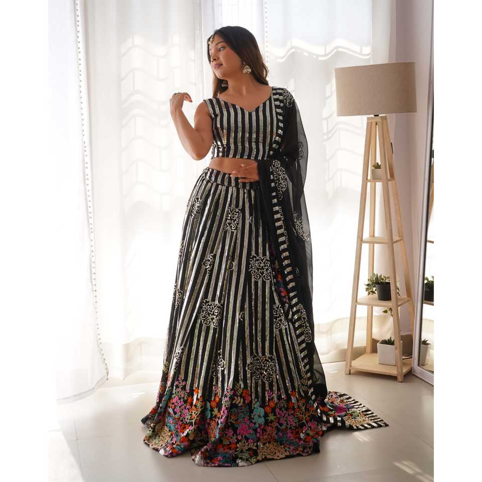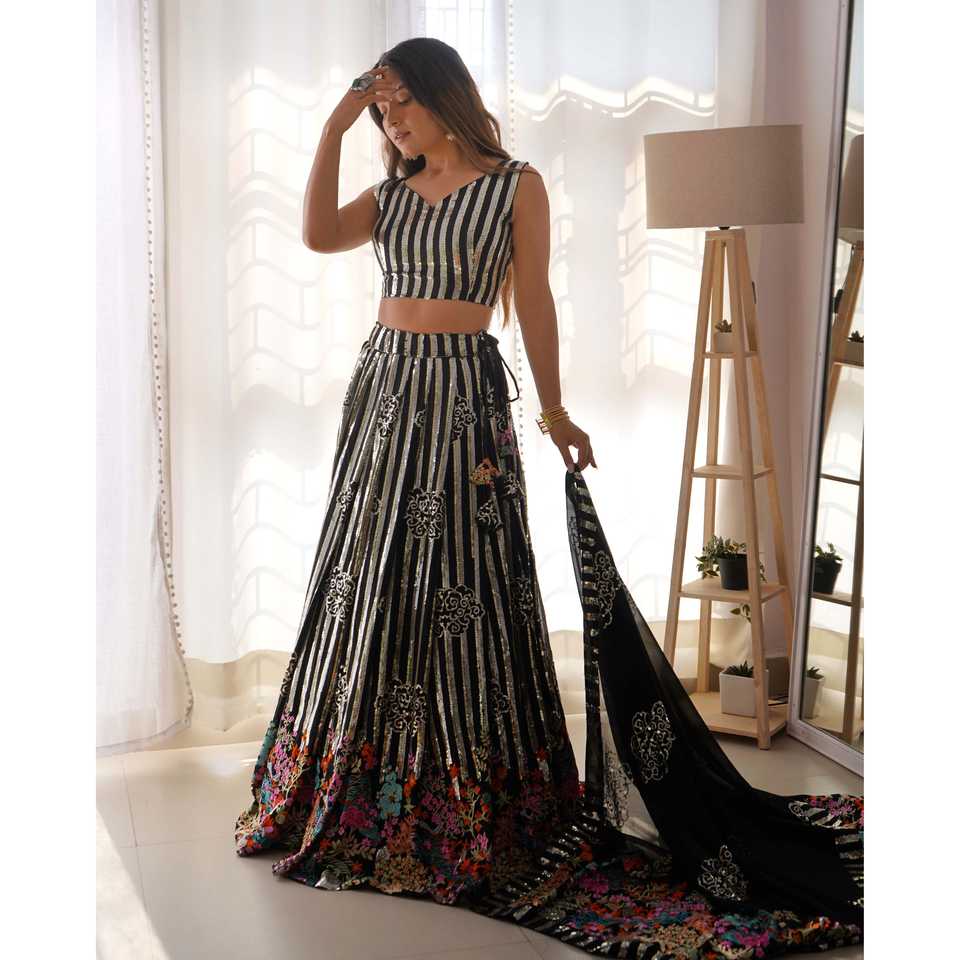 Sari de Fiesta con Bordado de Hilo y Lentejuelas para Vestir en Clubes