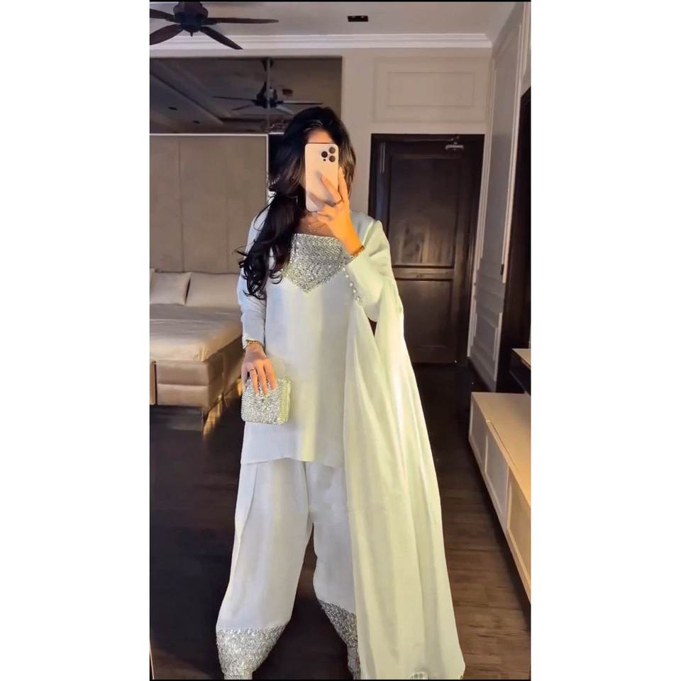 Diseñador Top-Bottom y Dupatta Set con hilo y secuencia de trabajo Disfraces elegantes
