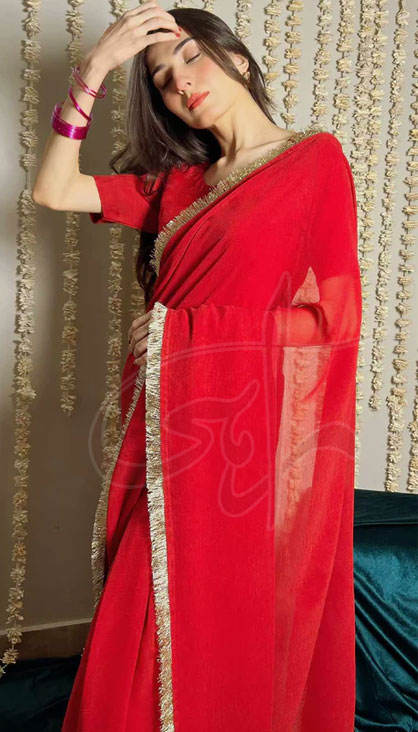 Sari de Mujer de Seda y Chifón Rojo Hecho a Mano con Tela Suave de Alta Calidad y Diseño de Moda para Fiestas