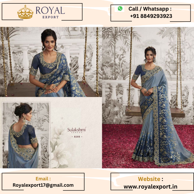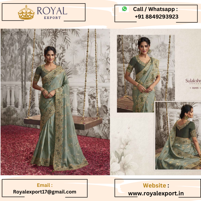Diseñador Trending Soft Fancy Saree con resaltado con hermoso bordado Zari Work Wedding Saree por Royal Export