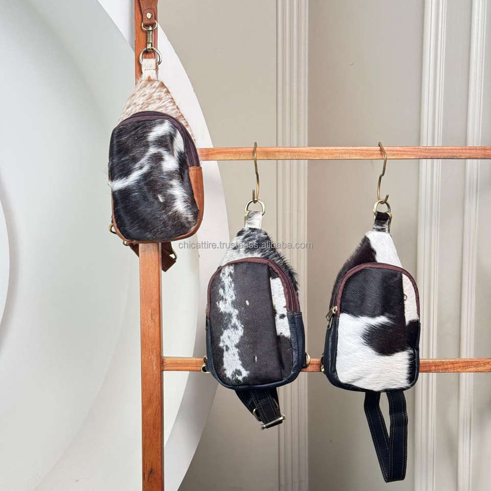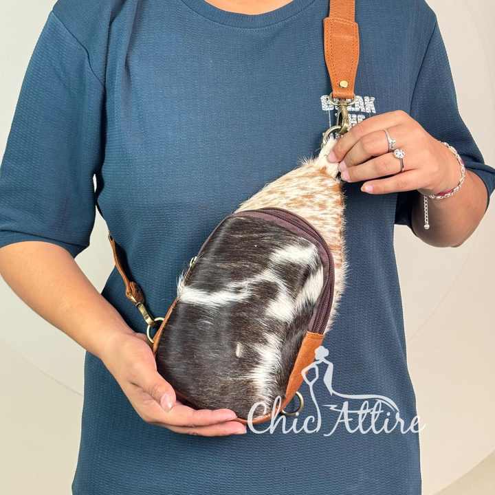 Product name:Hair-On Cowhide Leather Crossbody Fanny Chest Bag