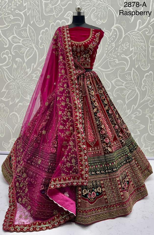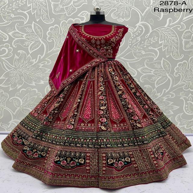 Terciopelo de diseñador con bordado múltiple pesado Nupcial Lehenga Choli Fabricante DE LA India al precio más bajo
