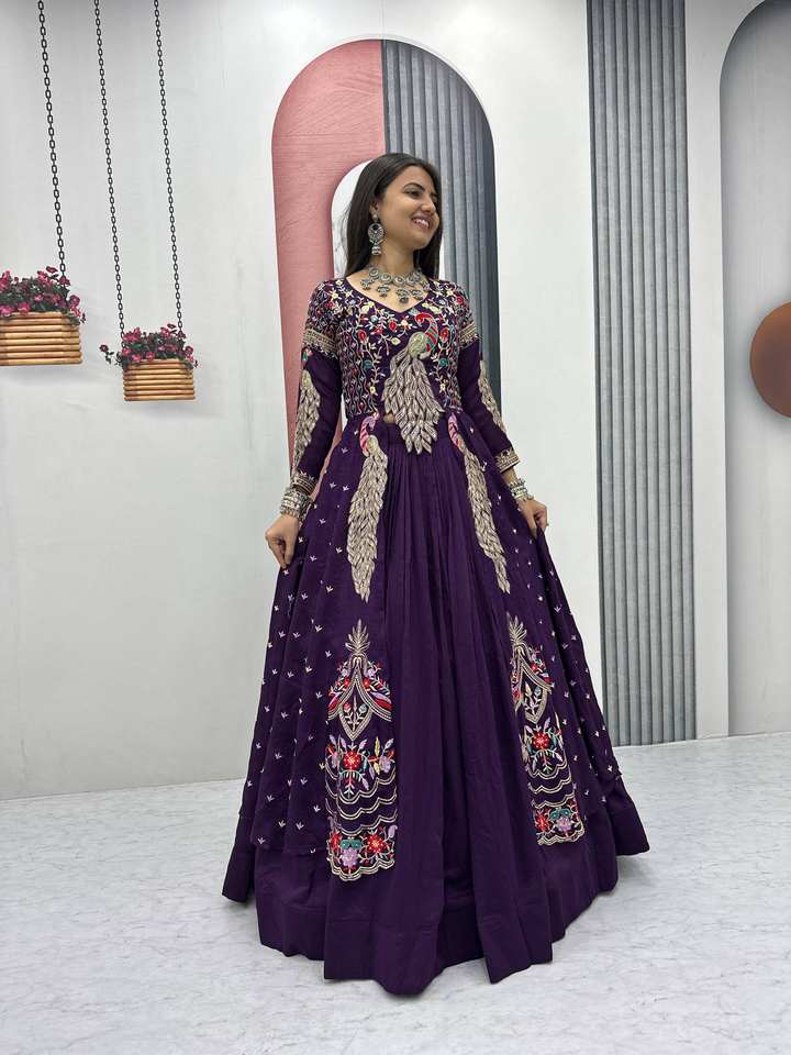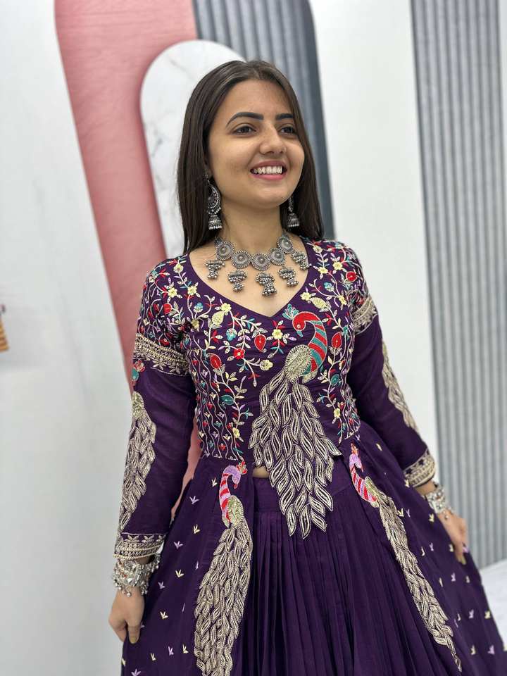Lehenga Choli de Diseño con Bordado de Hilo de Seda Vichitra y Chal