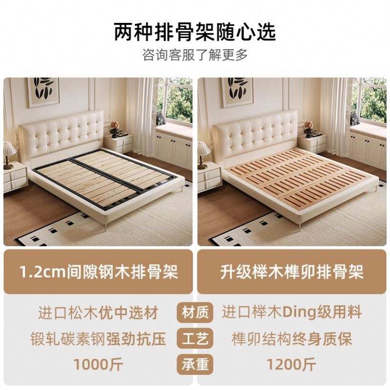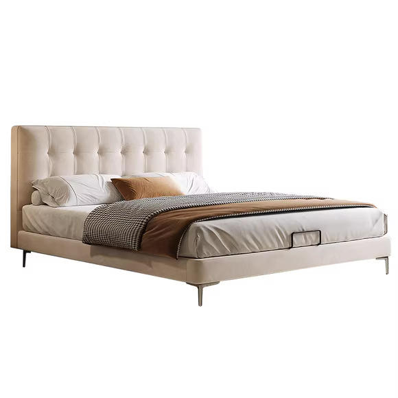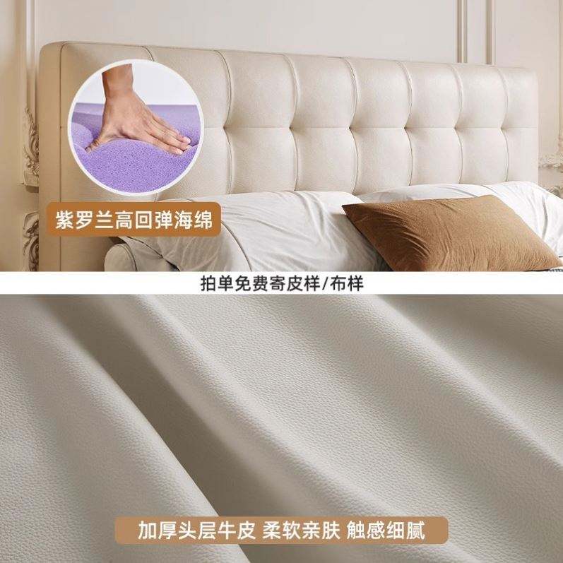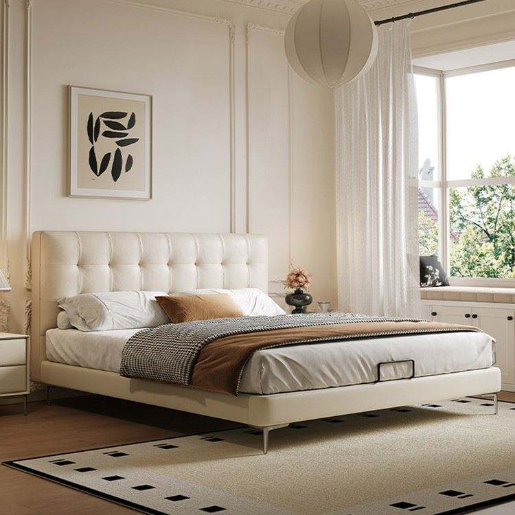 Cama de gofres de diseño, cama tamaño King de estilo crema francés, dormitorio principal, estilo antiguo pequeño, pies altos de cuero Doble
