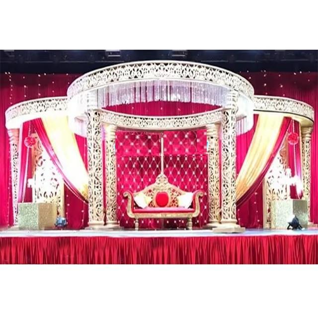 Decoración de cristal de boda de diseñador, Mandap de fibra, conjunto de Mandap de boda de estilo abierto exclusivo, Mandaps de forma redonda de boda gloriosa