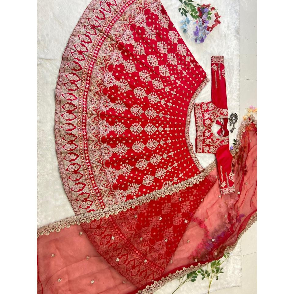 Vestidos de Novia de Diseñador - Hermoso Lehenga Choli con Bordado de Hilo