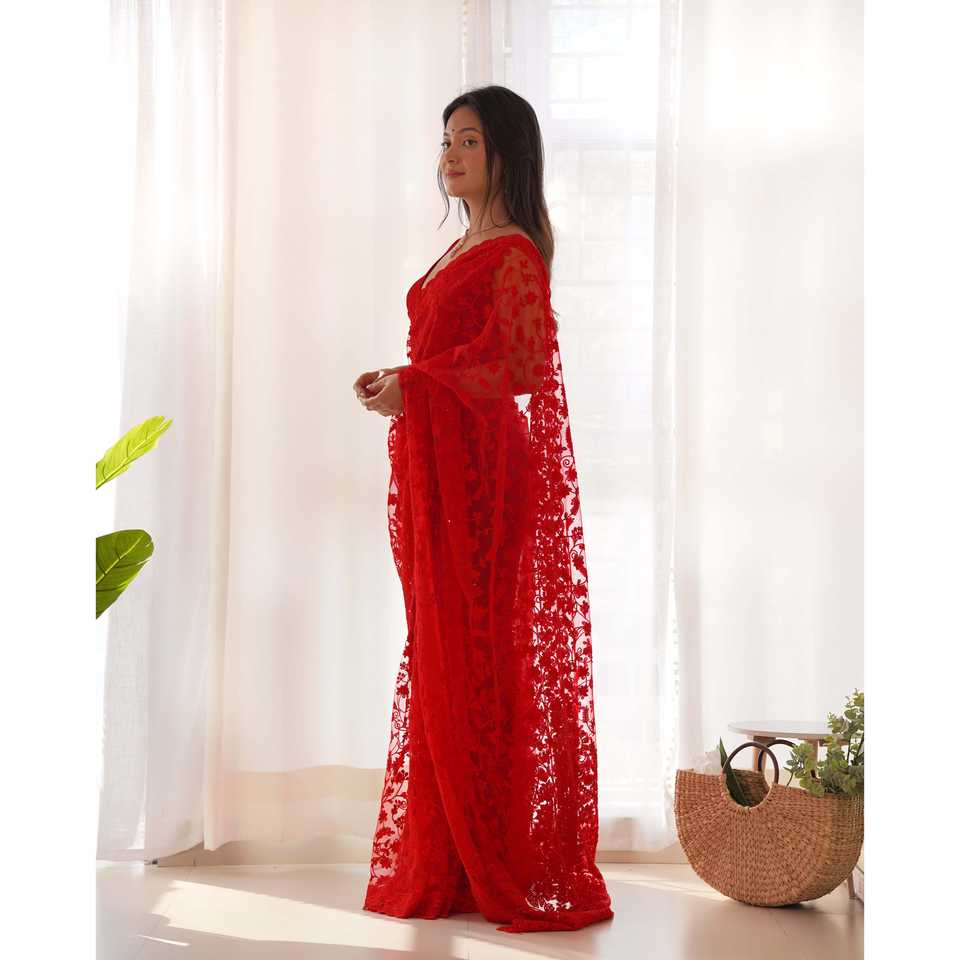 Sari de boda de diseñador con bordado Zari y trabajo en piedra