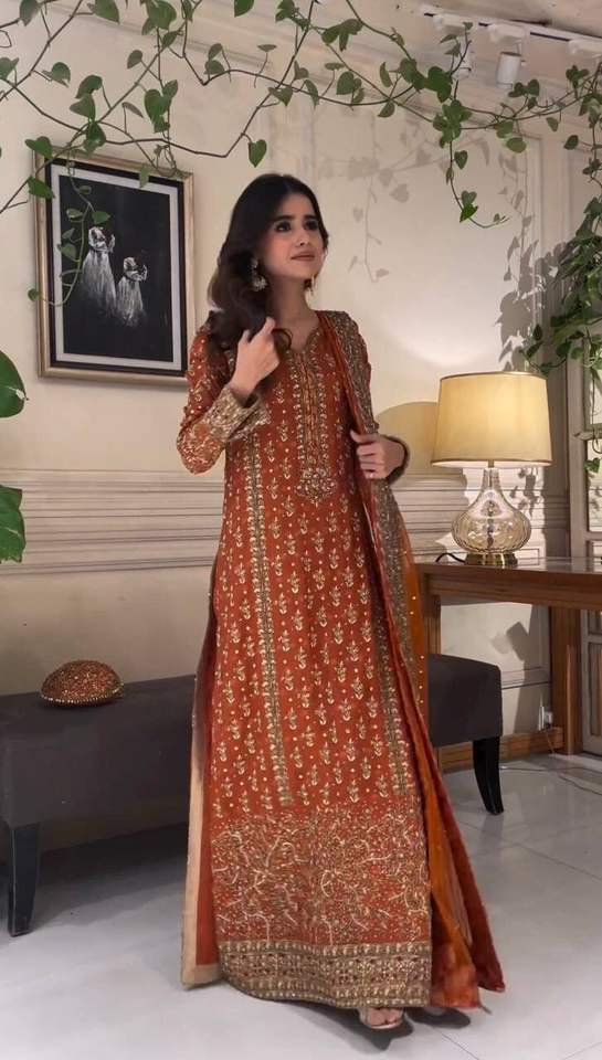 Nombre del producto:Falso Georgette secuencia trabajo y bordado Kurti y fondo con Dupatta