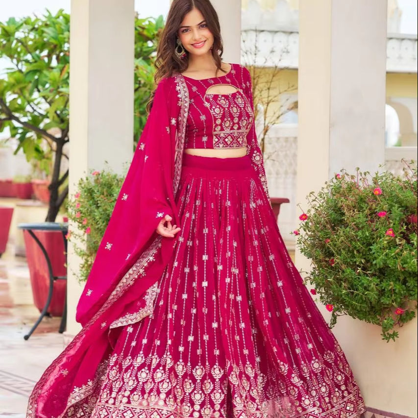 Vestido de boda de diseñador y Dupatta con trabajo de bordado de secuencia