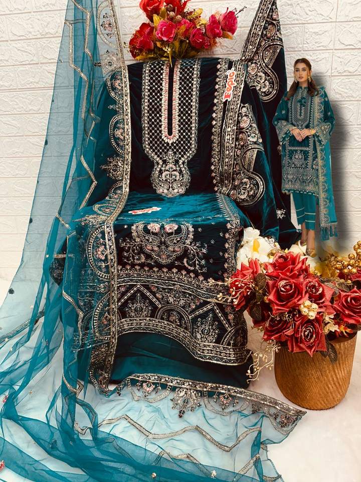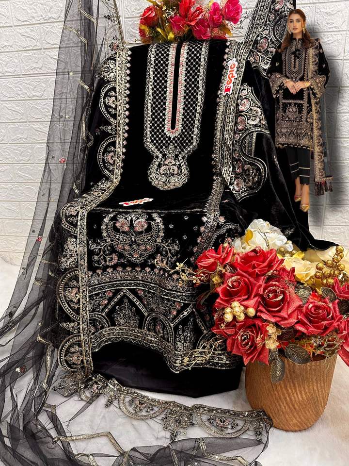 Colección de invierno de diseñador Trajes de Salwar Kameez con bordado de terciopelo para bodas y fiestas de India