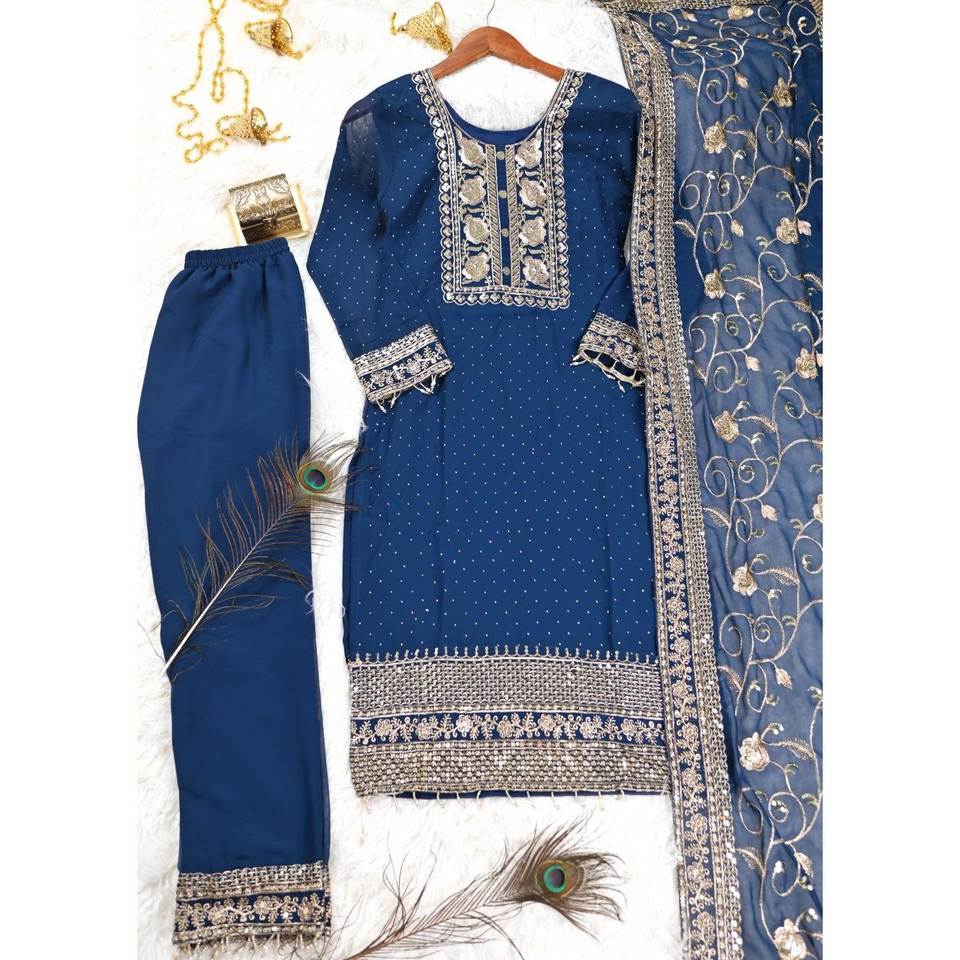 Traje Bordado de Diseñador para Mujer con Pedrería, Conjunto Elegante