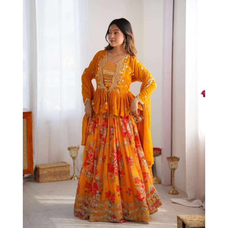 Ropa de fiesta de diseñador para mujer Lehenga Choli con hermosa impresión digital