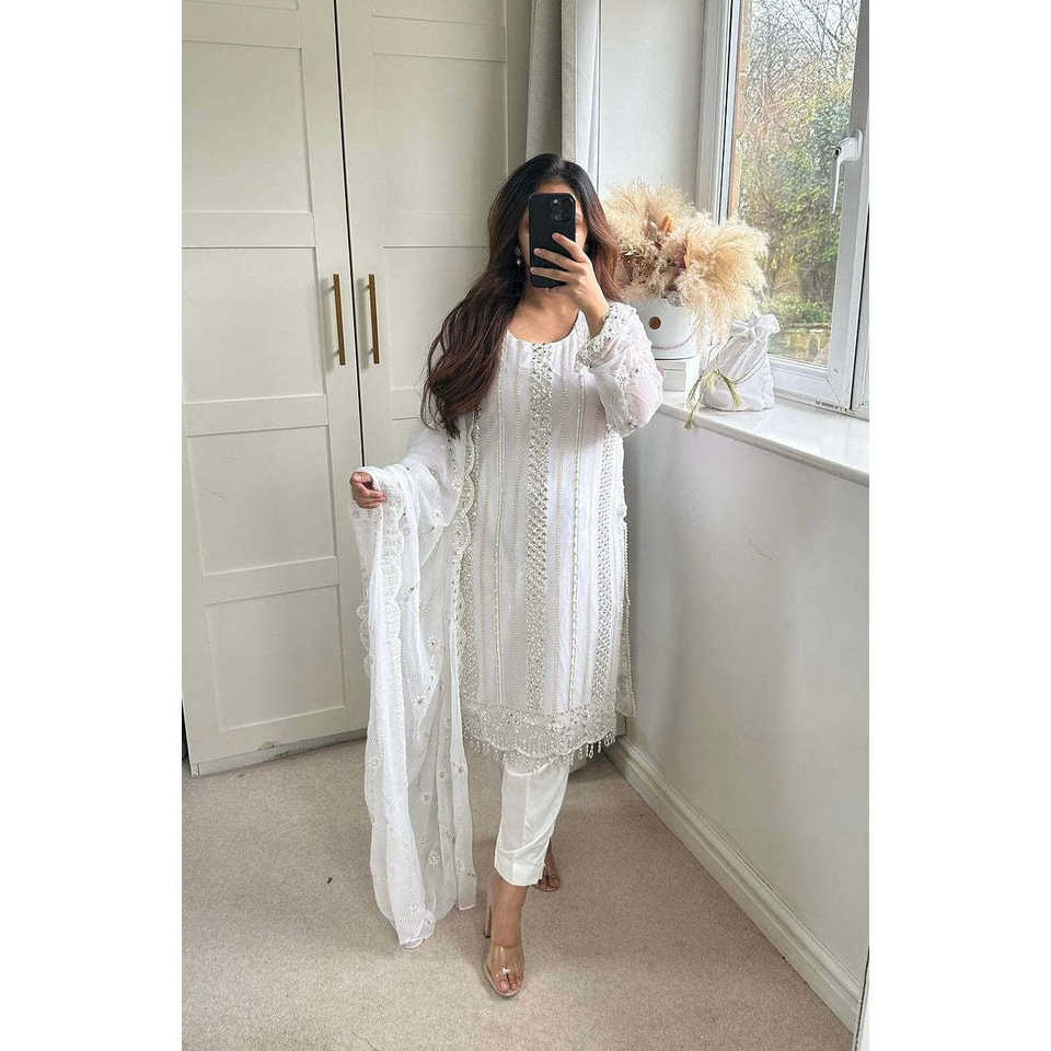 Conjunto de ropa de fiesta de diseñador para mujer Pantalón largo superior Dupatta en estilo elegante