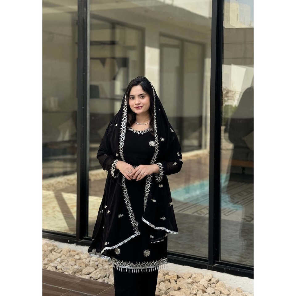 Conjunto de ropa de fiesta de diseñador para mujer Top elegante Plazzo y hermosa Dupatta