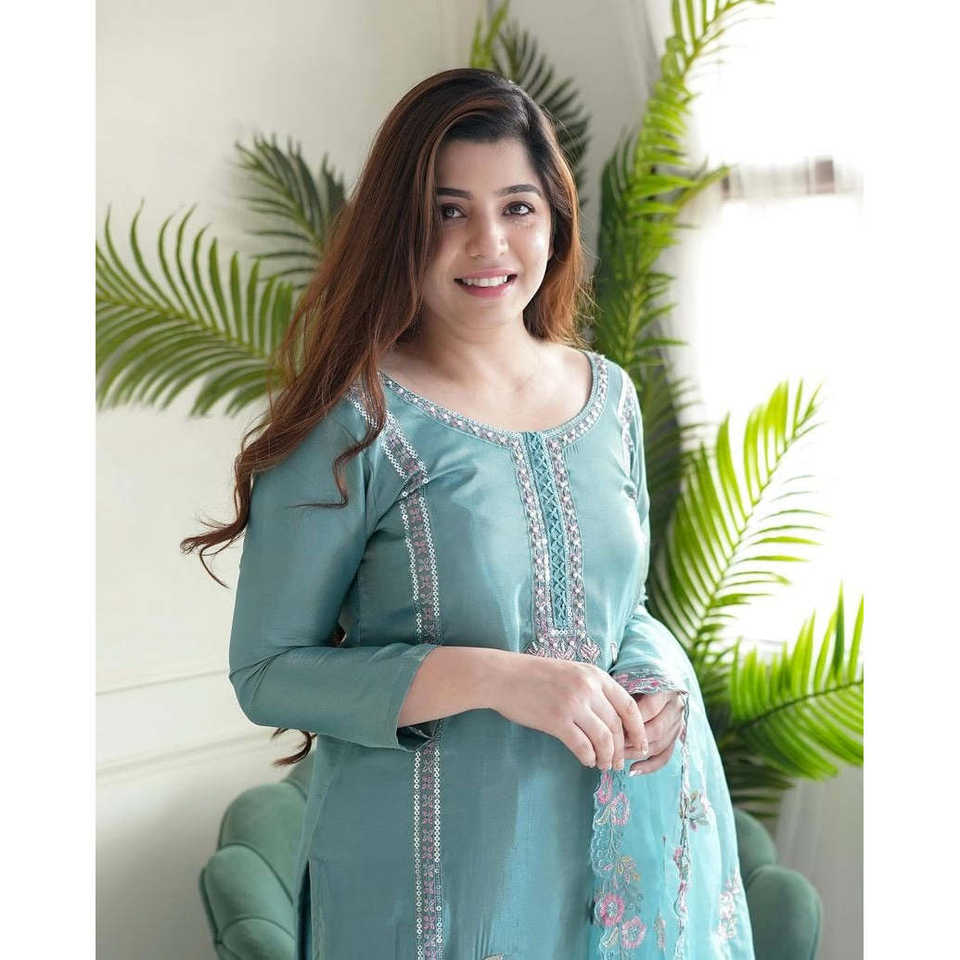 Conjunto de traje de fiesta de diseñador para mujer con hilo bordado y trabajo de lentejuelas