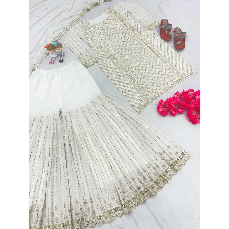 Conjunto de traje de fiesta de diseñador para mujer Top elegante Plazzo y Dupatta para ocasiones especiales