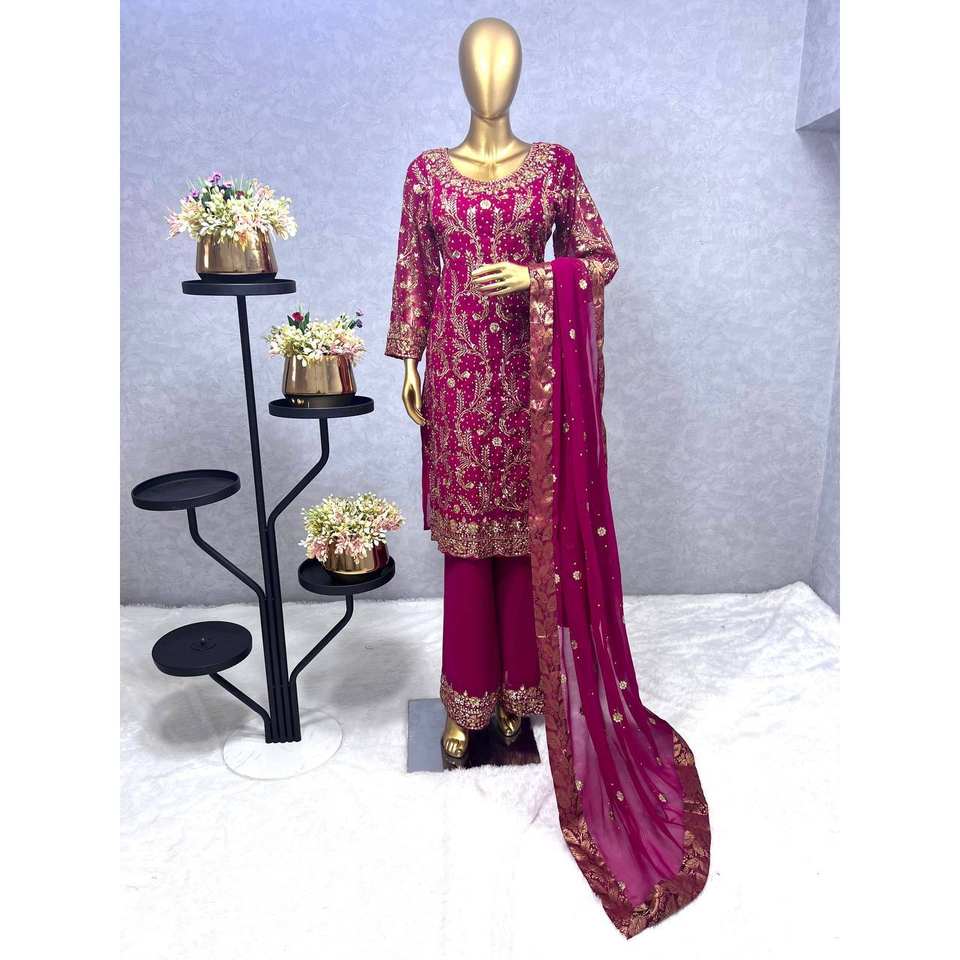 Conjunto de Top y Pantalón de Fiesta Rosa Oscuro para Mujer de Diseñador JD y Hermoso Dupatta