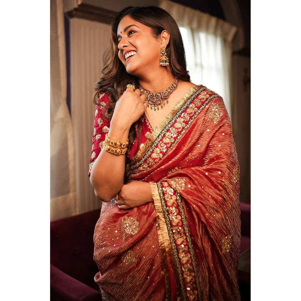 Saree de diseñador para mujer con hermosos bordes bordados de hilo Jari y acentos de diamantes