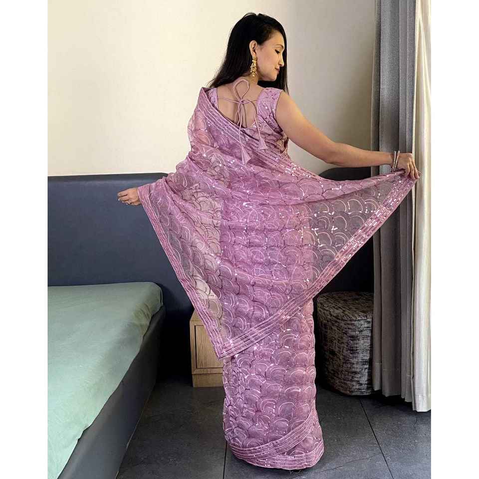 Saree de mujer de diseñador con Zari Dori y borde de encaje bordado
