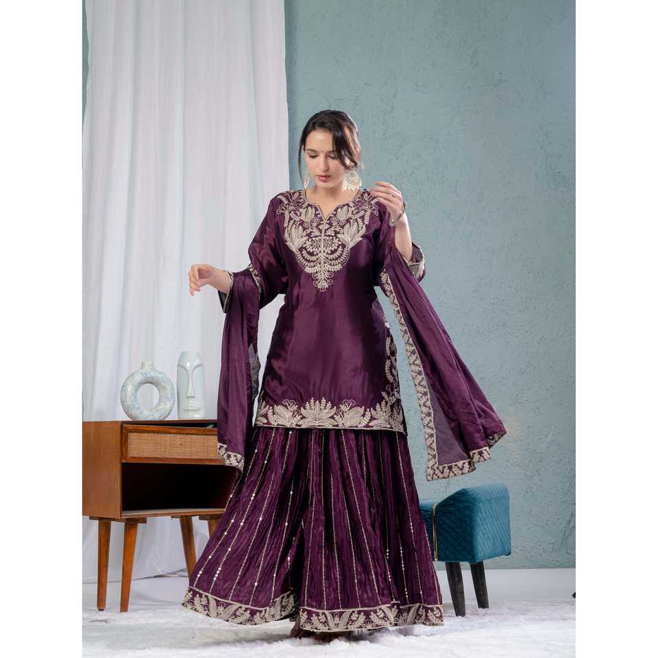 Conjunto de traje de diseñador para mujer con bordado y trabajo de secuencia de codificación