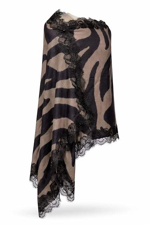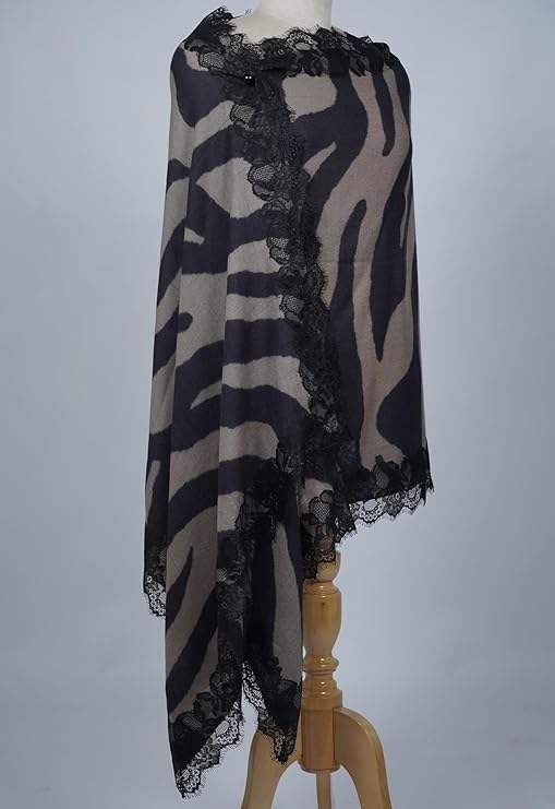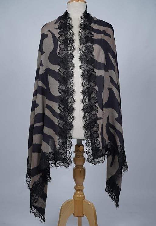 Chal de Cachemira y Lana Fina para Mujer, Diseño Digital, Ligero y Suave, con Borde de Encaje en los Cuatro Lados, Ideal para Fiestas