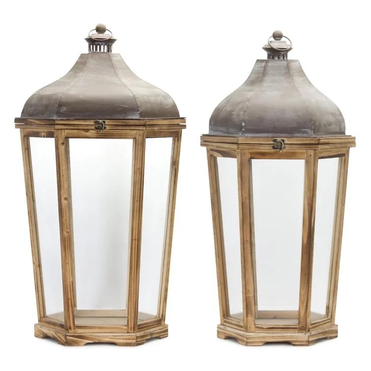 Linterna de madera de diseñador de excelente calidad, portavelas de diseñador hecho a mano, juego de dos, nueva linterna de vela de madera al por mayor