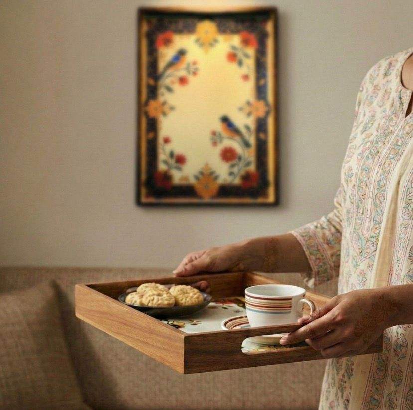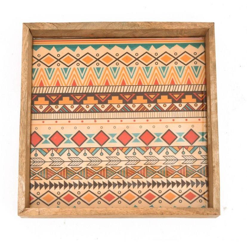 Bandeja de Madera de Diseño con Patrón Esmaltado, Bandeja para Servir Café, Té y Aperitivos
