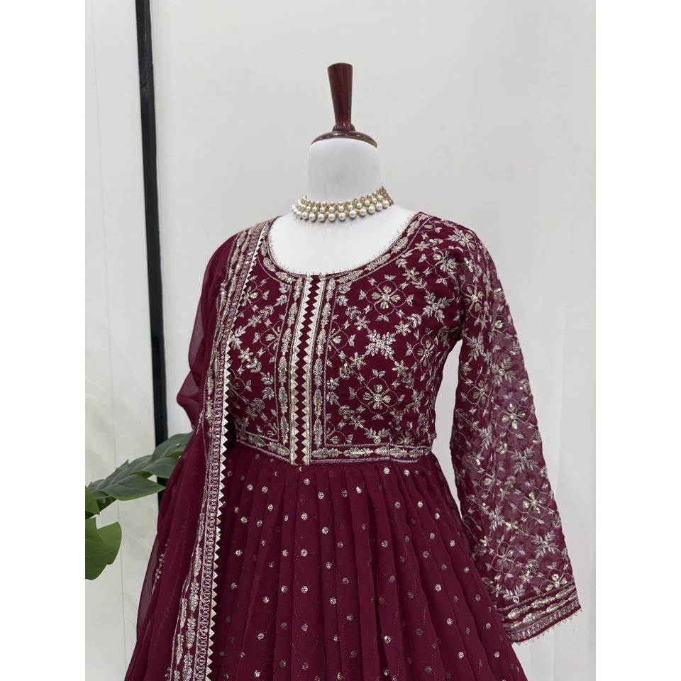 Vestido de diseñador XL Anarkali y Dupatta con hilo y secuencia de trabajo