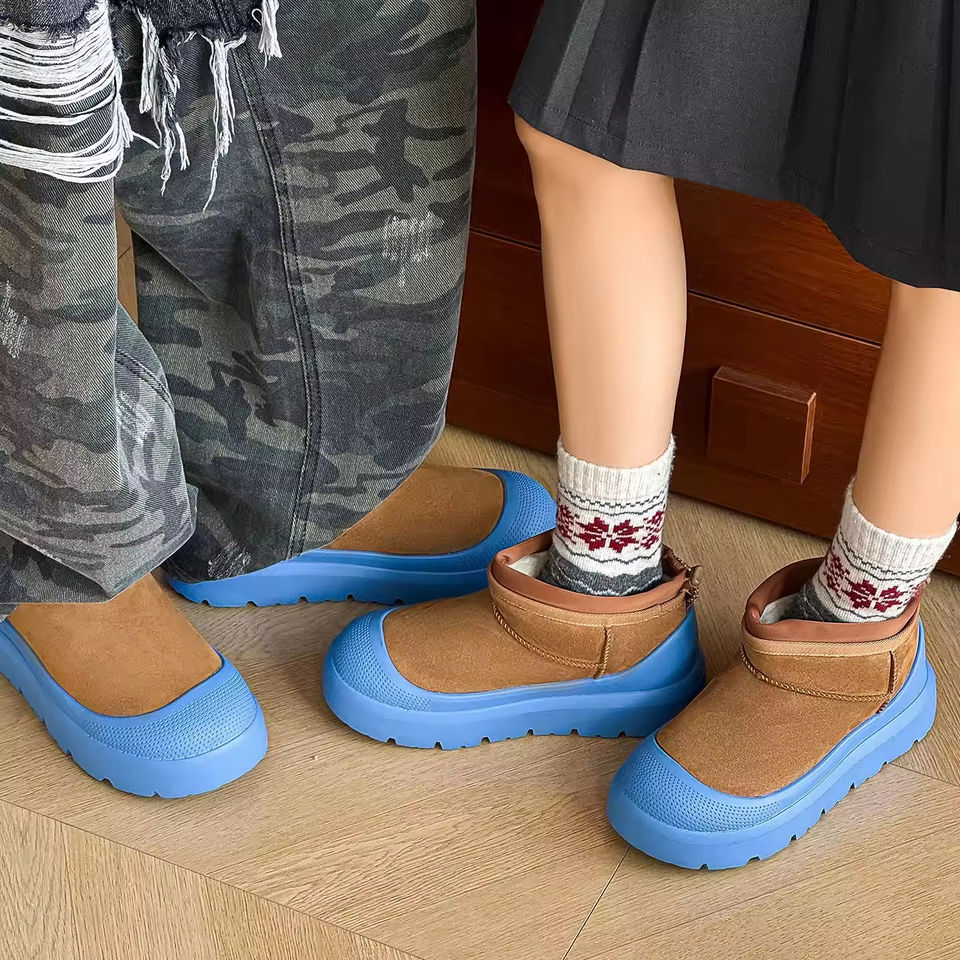 Botas de Nieve de Invierno para Parejas, Diseño de Botas Cortas con Forro de Felpa, Zapatos de Gamuza de Fibra de Vaca para Hombre