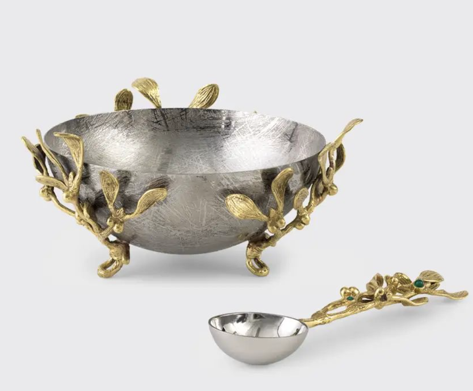 Diseño de vajilla elegante, frutero grande y moderno con hojas de árbol, cuencos de mezcla redondos y elegantes decorativos para uso en bodas