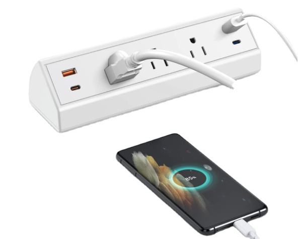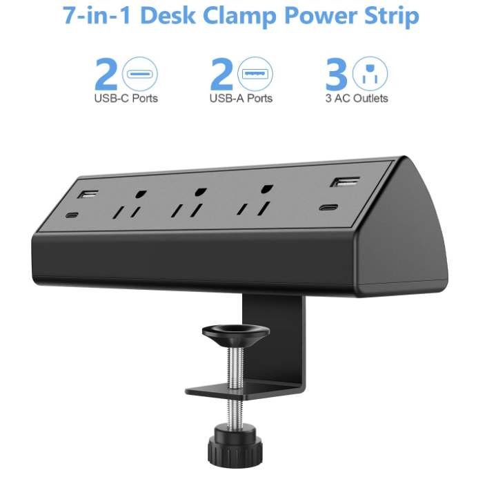 Tira de alimentación con abrazadera de escritorio, protector contra sobretensiones de montaje en escritorio, estación de carga rápida de 40W, 2 puertos USB C PD 20W, 3 salidas, borde de mesa