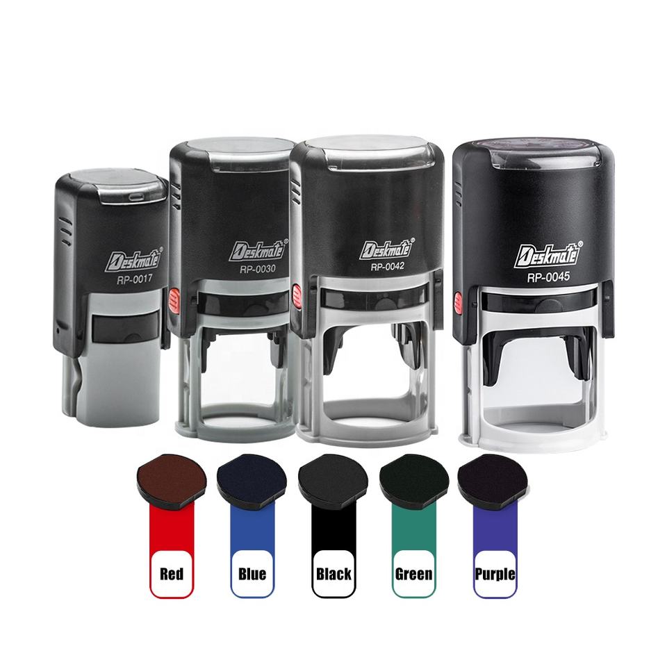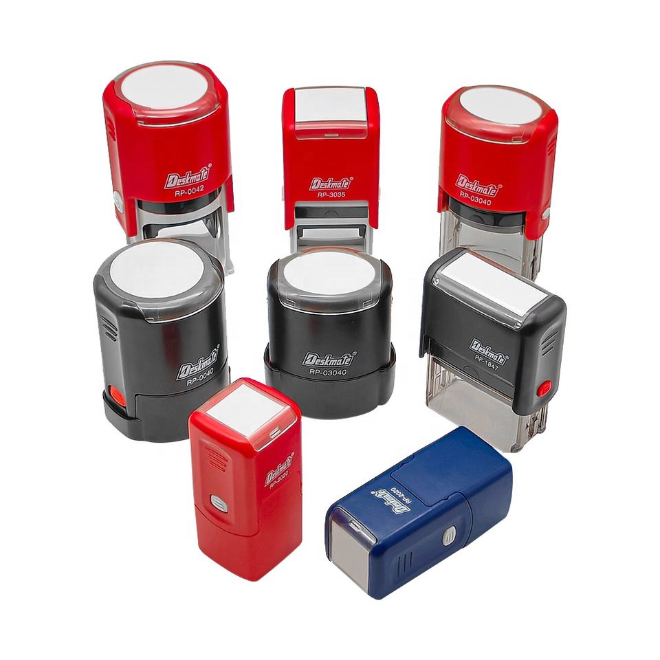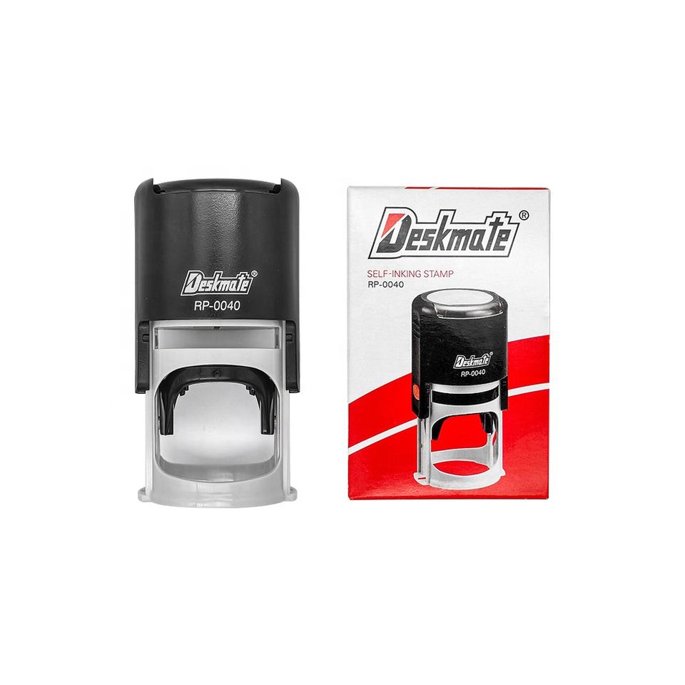 Logotipo de goma de texto Deskmate sello autoentintado personalizado material en blanco con fecha para firma de nombre de oficina