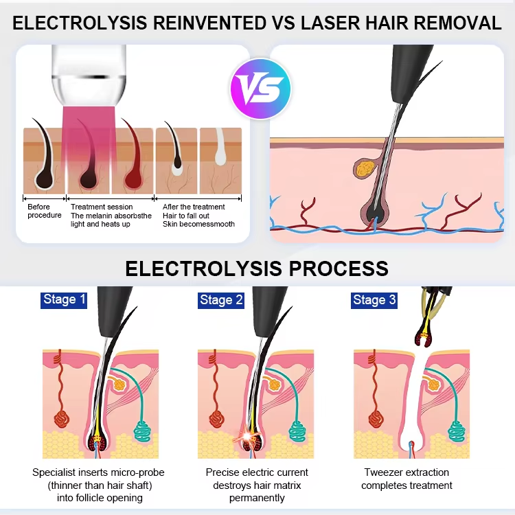 Electrólisis:destrucción permanente de folículos para la eliminación del vello