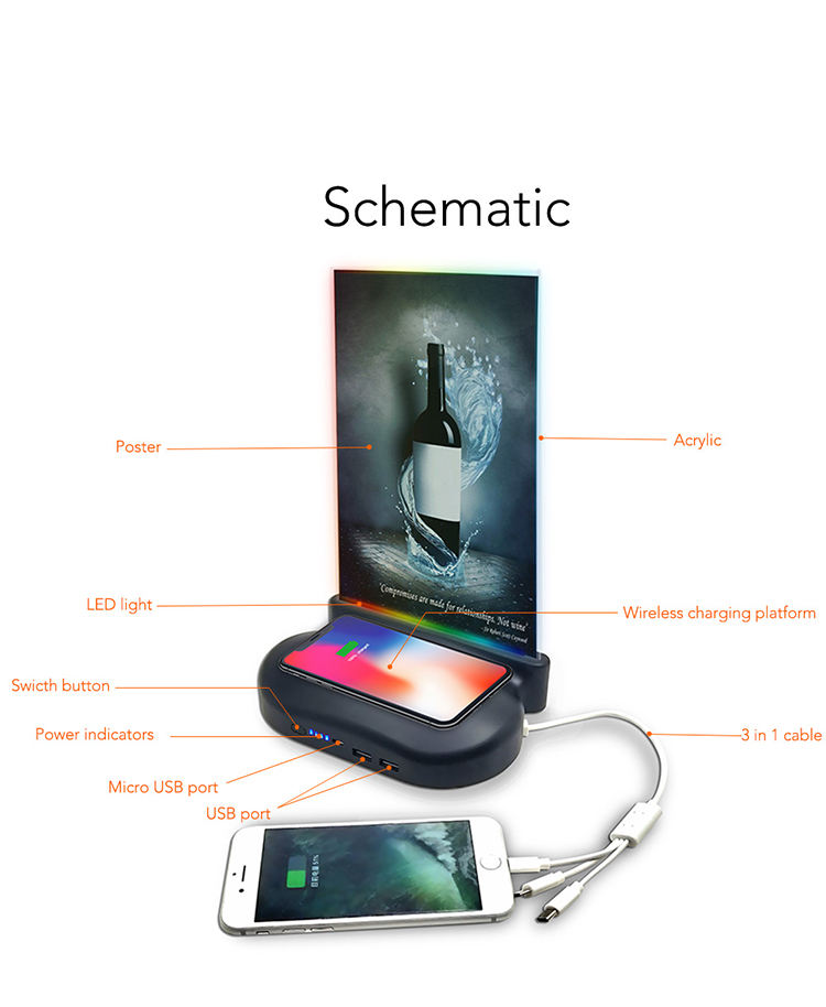 Banco inalámbrico rápido inalámbrico del poder del menú del anuncio de la carga